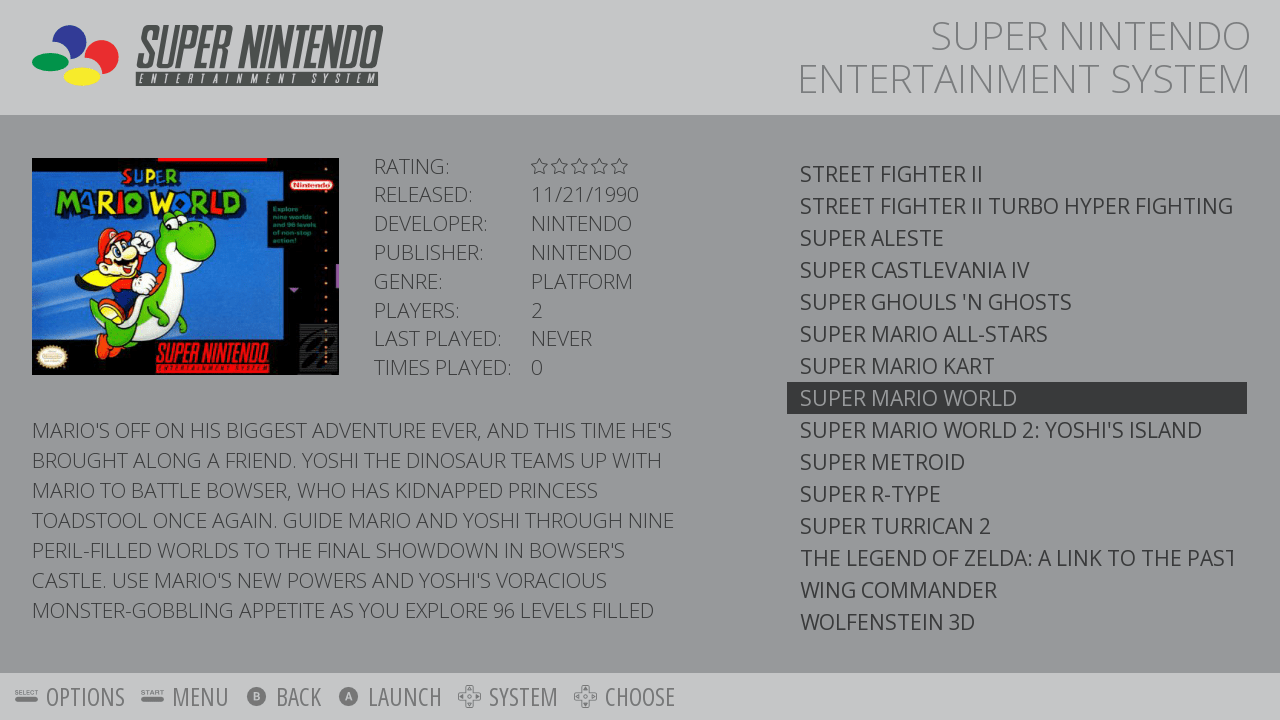 Wybieramy pożądany emulator i możemy zaczynać grę! Co jednak zrobić aby nasze romy miały opis i okładki jak na screenie po lewej? Wciskamy „start” na padzie lub klawiaturze, tu wybieramy opcję „scraper”, potem „scrape now” i „start”. System będzie szukał w Internecie okładek i informacji na temat naszych romów. Jeśli pokaże kilka możliwości, musimy sami mu pomóc i wybierać gry. Proces może być ekstremalnie wolny jeśli mamy dużo romów, ale jest tego warty – nasza biblioteka będzie wyglądać ślicznie, a okładki pomogą przypomnieć sobie gry, których tytuły niewiele Nam mówią.
